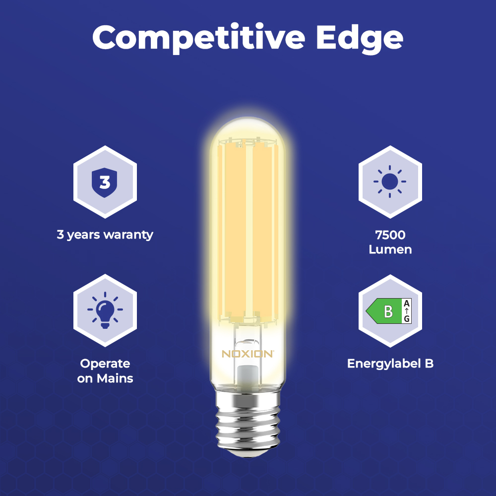 Die Noxion LED HID Röhrenförmig Fadenlampe E40 38W 7500lm – 740 Kaltweiß | Ersatz Für 125W ist eine effiziente E40 LED-Lampe mit Retrodesign und der perfekte Ersatz für Ihre konventionellen 125W Lampen mit E40. Zudem strahlt sie Licht in der Farbtemperatur aus und punktet durch eine lange Lebensdauer.